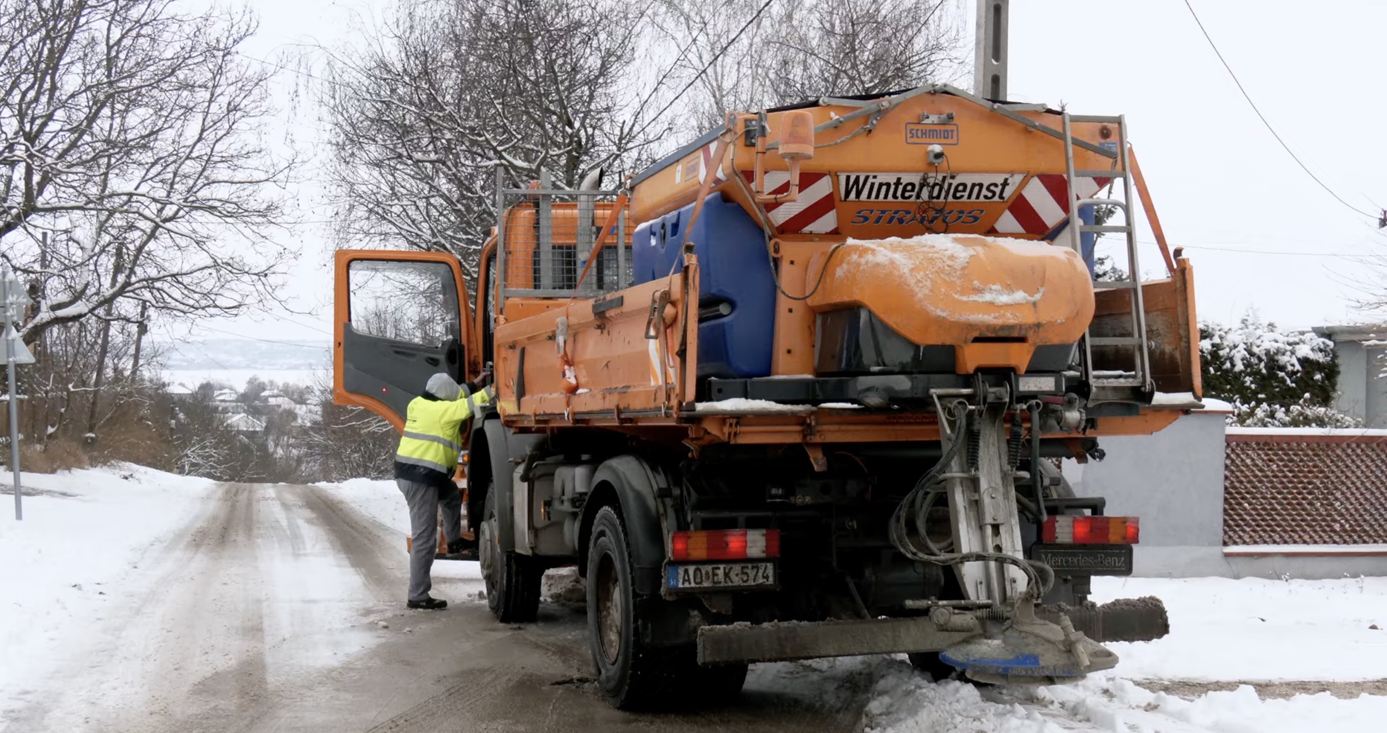 A síkosságmentesítés nemcsak az oktatási intézmények környékén, hanem az egyéb forgalmas gyalogos szakaszokon is hajnal óta folyamatos. A sóládák feltöltése ütemezetten, folyamatosan történik.