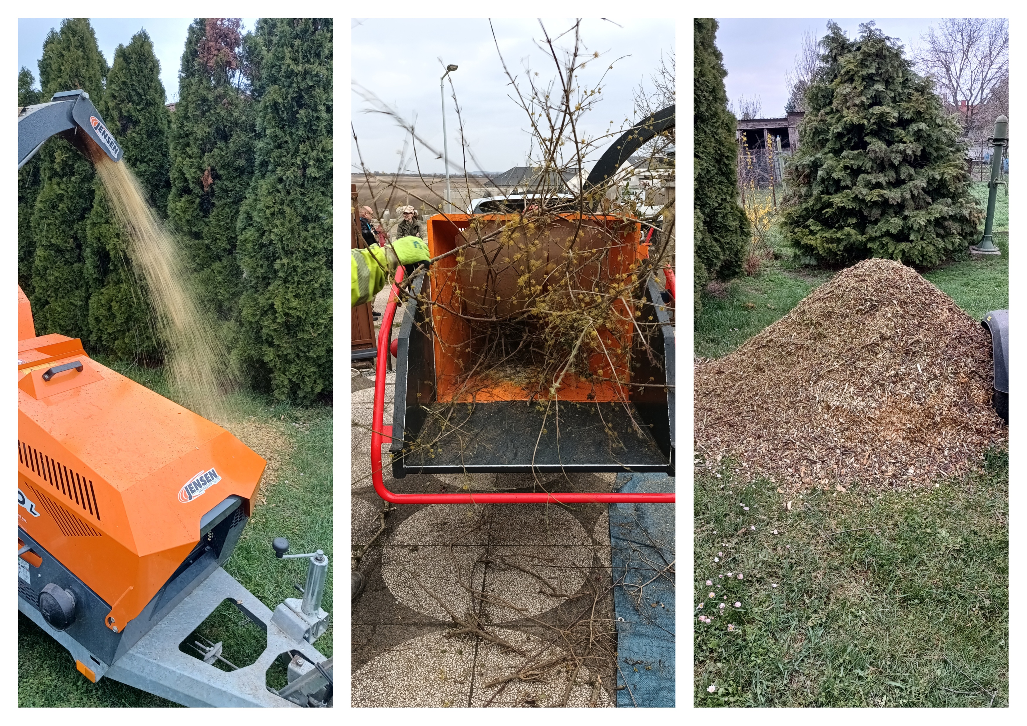Az apríték az ingatlanon marad, így azt a tulajdonos helyben felhasználhatja mulcsozáshoz vagy komposztáláshoz.